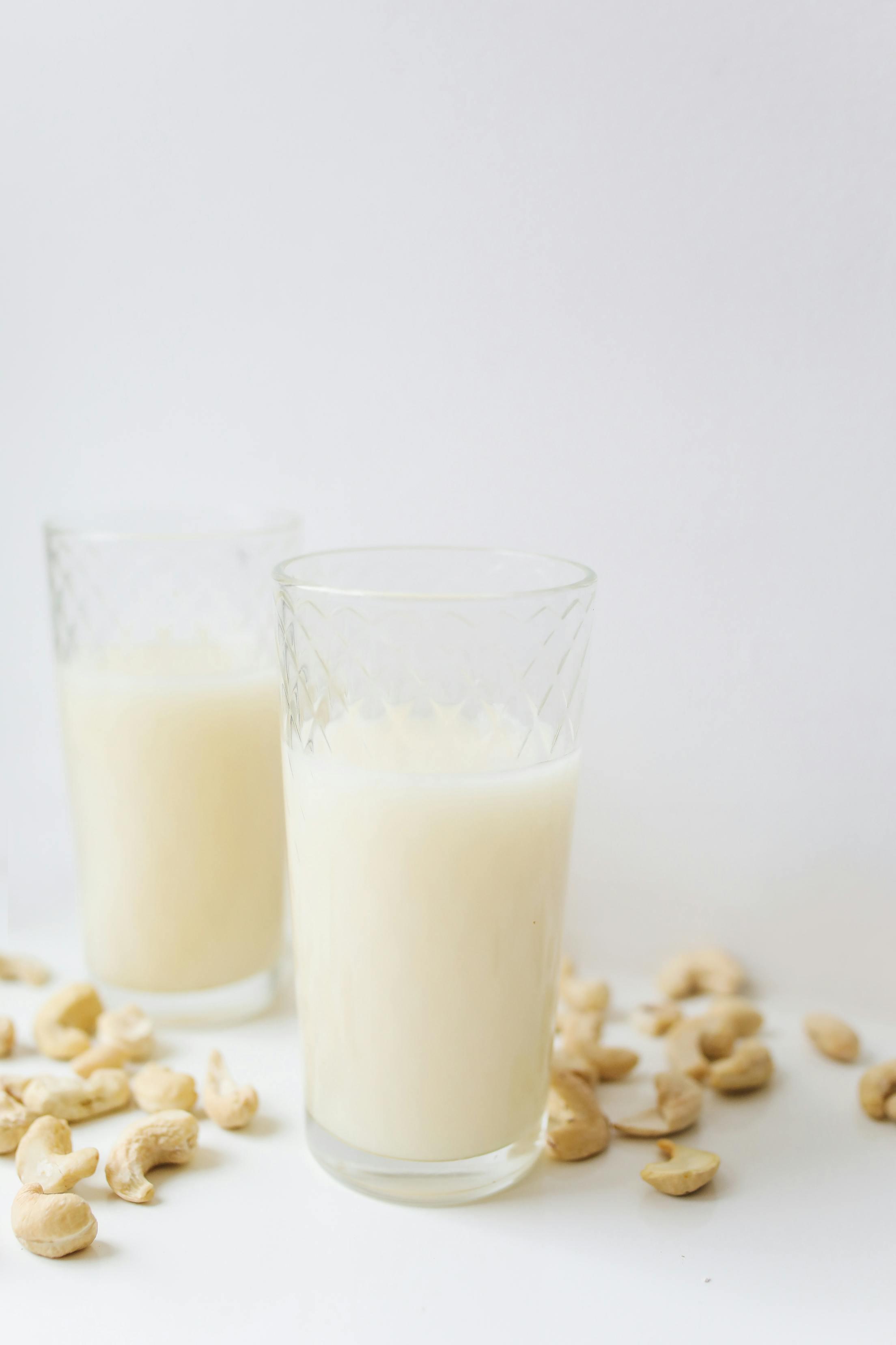 Cashew milk is smooth and rich, made from creamy cashews—imagine a dreamy, nutty hug in every sip!