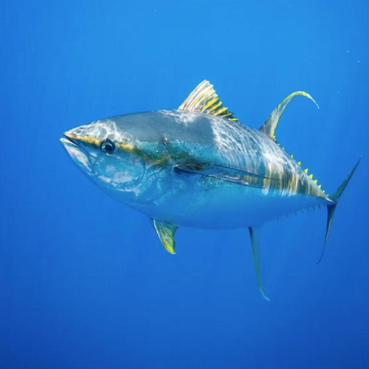 This speedy swimmer is a superstar of the ocean, known for its bright yellow fins! It’s delicious in sushi, grilled, or even in a tasty tuna sandwich.