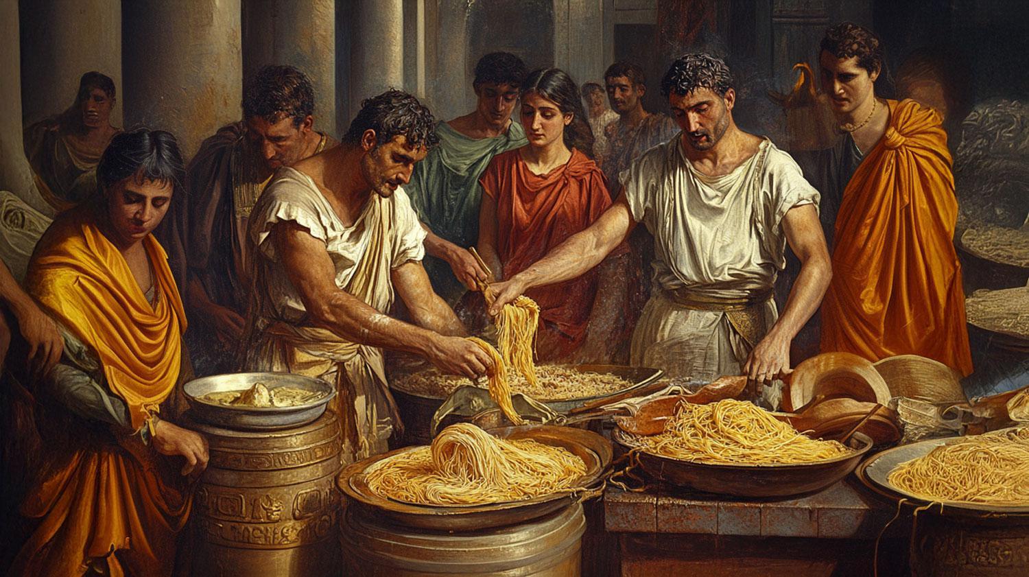 Ancient Romans and Chinese made different kinds of noodles. Italians later turned theirs into pasta with tomato sauce!