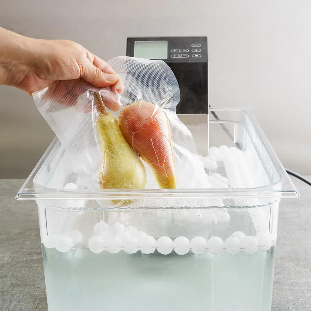 A device that cooks food slowly in a vacuum-sealed bag, submerged in a temperature-controlled water bath. It’s great for precision cooking, especially meats. Fun Fact: Sous vide (meaning “under vacuum” in French) was developed in the 1970s by chefs looking to preserve flavors and textures!