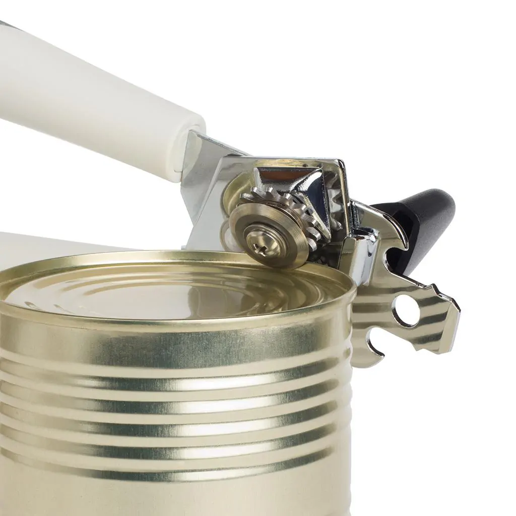 A tool used to open metal cans. Modern can openers have a rotating wheel and a sharp blade to cut through the lid. Fun Fact: Canned food was invented in 1810, but the first can opener didn’t appear until 50 years later – people originally used knives or hammers!
