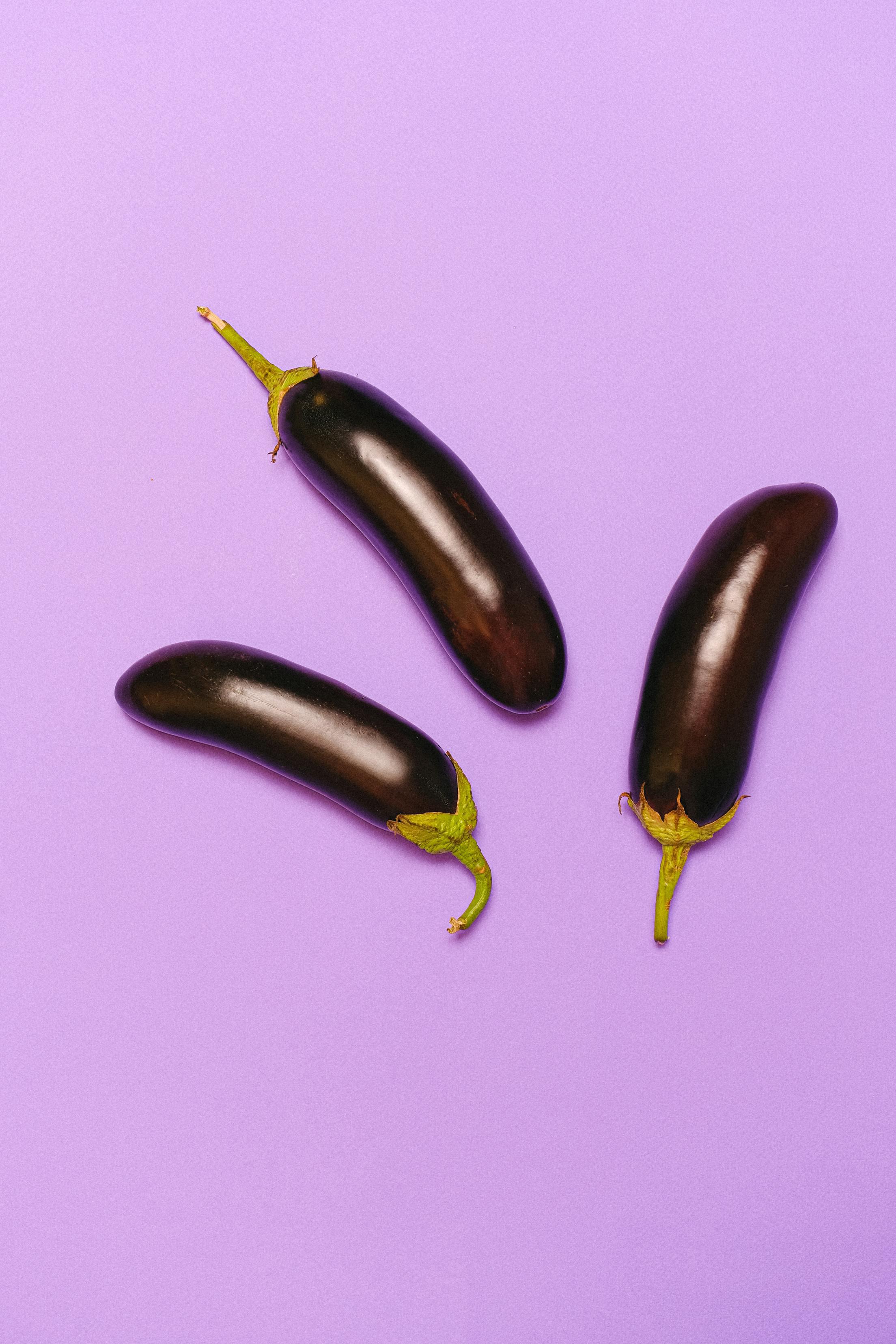 Eggplants are shiny, deep purple, and shaped like a giant raindrop! They taste mild and soak up flavors like a sponge.